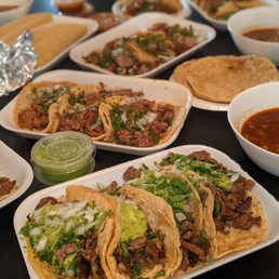Solid taco spot on El Cajon! My good friend took me here and we had a great meal! I personally had the carne asada, lengua, and pastor tacos. Salsa is self serve, The tacos are on the 2-3 biter size. I did enjoy the carne asada the most! Seating inside. Street parking is extremely tough during peak hours. Surcharge for card use, so I recommend bringing cash.